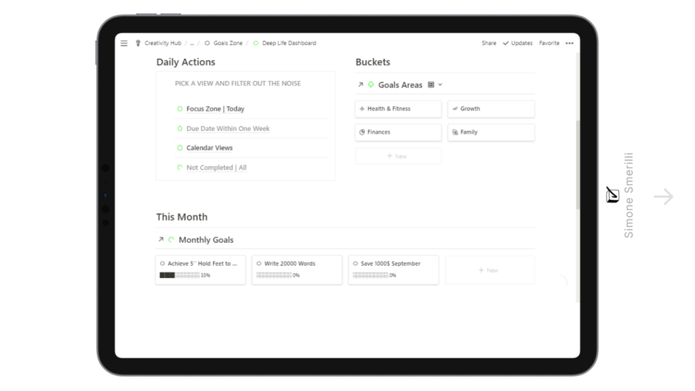 If you decide to upgrade the package, you also get a one-hour consultation with me, Simone, the creator of this goals-setting Notion system.