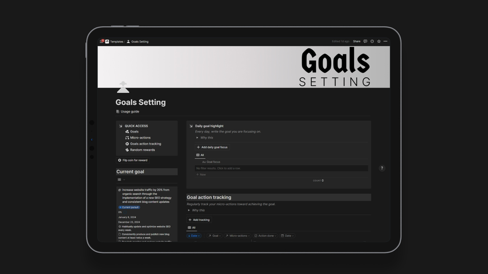Goal setting toolkit in Notion; 2 workflow automation with instructions