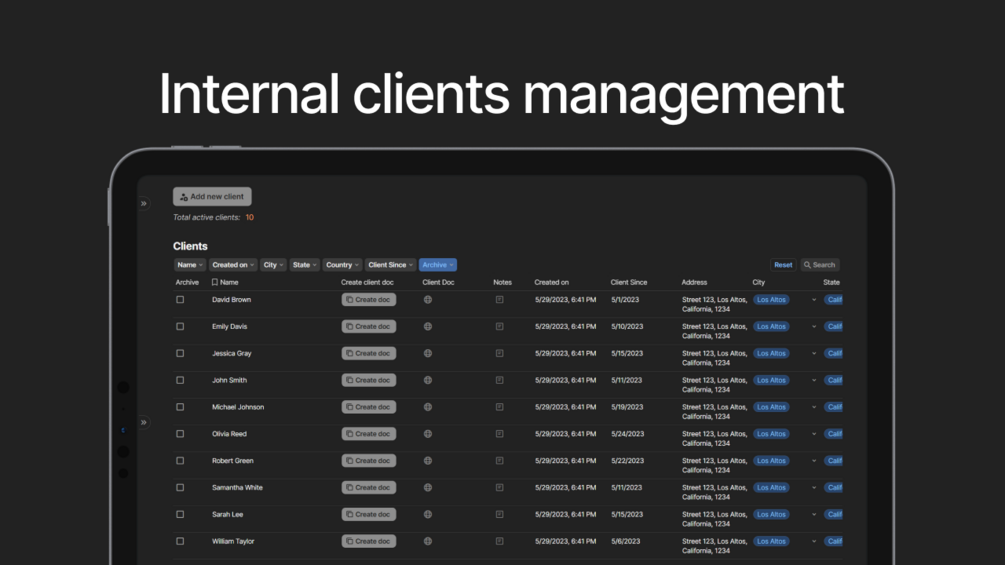 - Manage all your client information in one place, including invoices (optional)