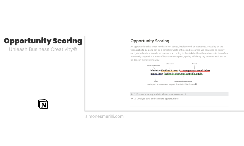 A full Notion template containing the Unleash Business Creativity lean system of startup development: from brainstorming to lean testing.